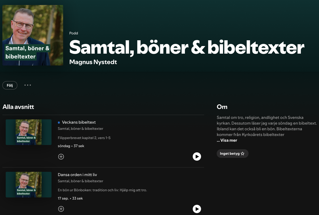 Jag spelar ocksÄ in en eller flera av veckans bibeltexter och publicerar varje söndag. Det blir en bön inbland ocksÄ.